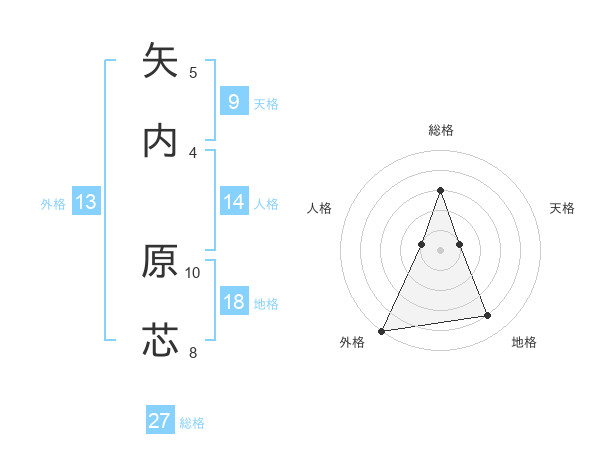 矢内 原芯さんを姓名の画数から五運を鑑定