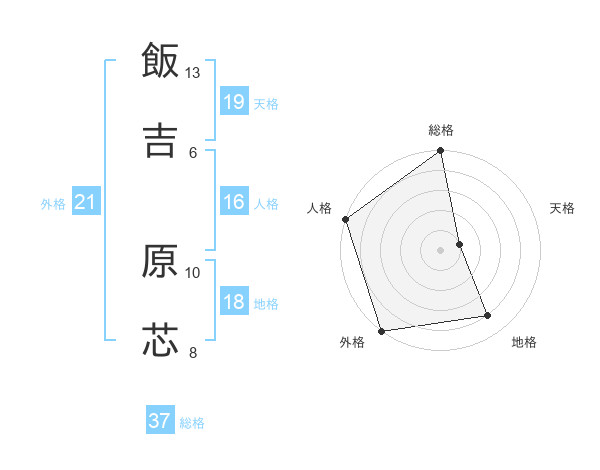 飯吉 原芯さんの天格は19画の1点!