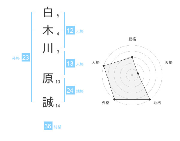 白木川 原誠さんの地格は24画の5点!