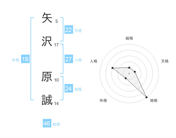 矢沢 原誠さんの天格は22画の1点!