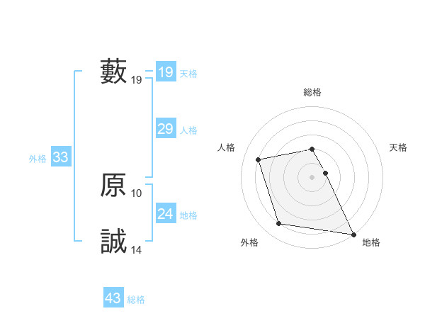 藪 原誠さんの地格は24画の5点!
