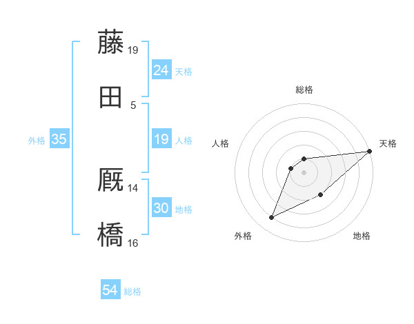 藤田 厩橋さんを姓名の画数から五運を鑑定