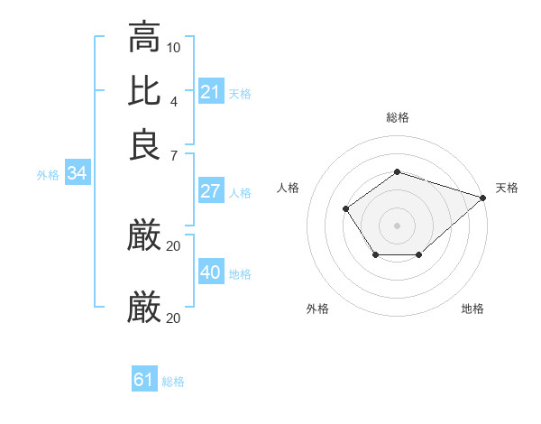 高比良 厳厳さんを姓名の画数から五運を鑑定