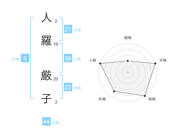 人羅 厳子さんの人格は39画の5点!