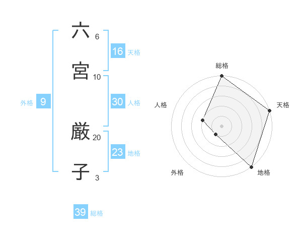 六宮 厳子さんの総格は39画の5点!