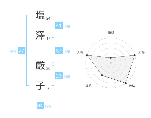 塩澤 厳子さんの総格は64画の1点!