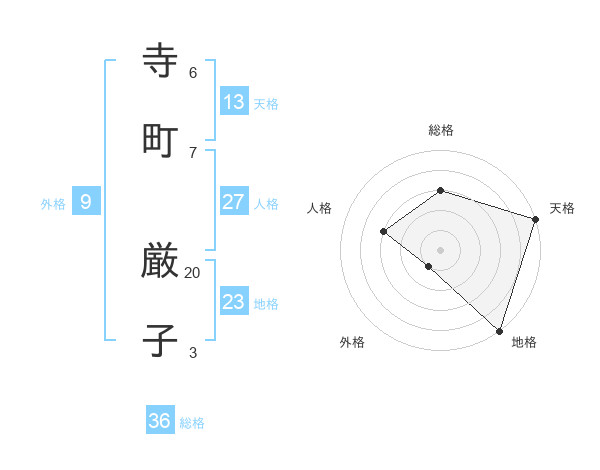 寺町 厳子さんの天格は13画の5点!