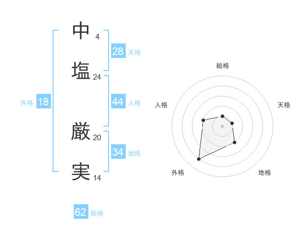 中塩 厳実さんを姓名の画数から五運を鑑定