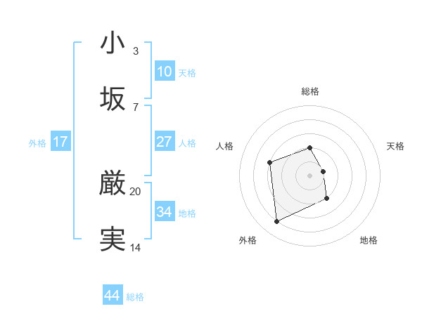小坂 厳実さんの総格は44画の2点!