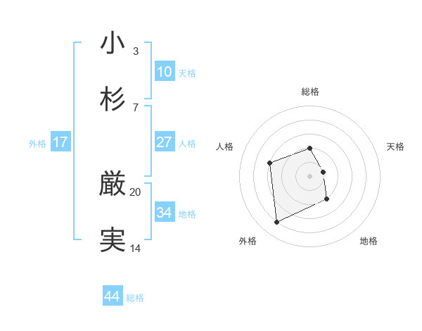 小杉 厳実さんの総格は44画の2点!