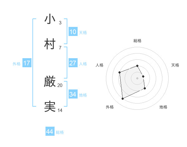 小村 厳実さんの総格は44画の2点!