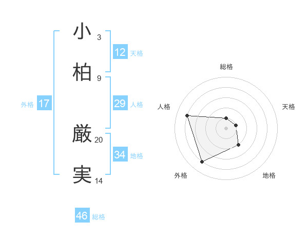 小柏 厳実さんの総格は46画の1点!