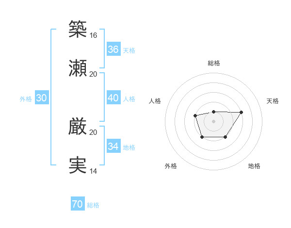 築瀬 厳実さんの総格は70画の1点!