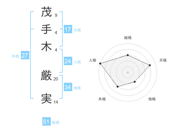茂手木 厳実さんを姓名の画数から五運を鑑定
