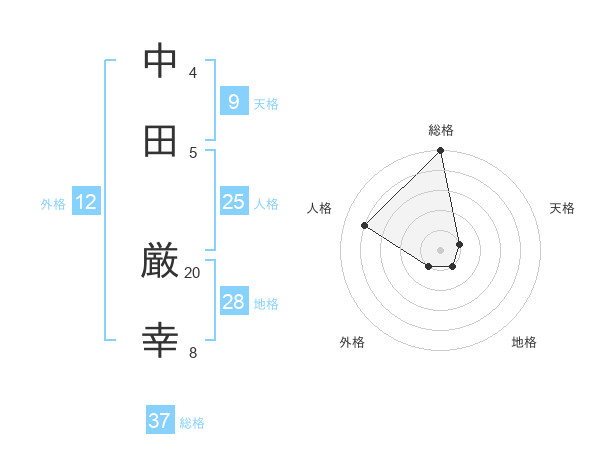 中田 厳幸さんを姓名の画数から五運を鑑定