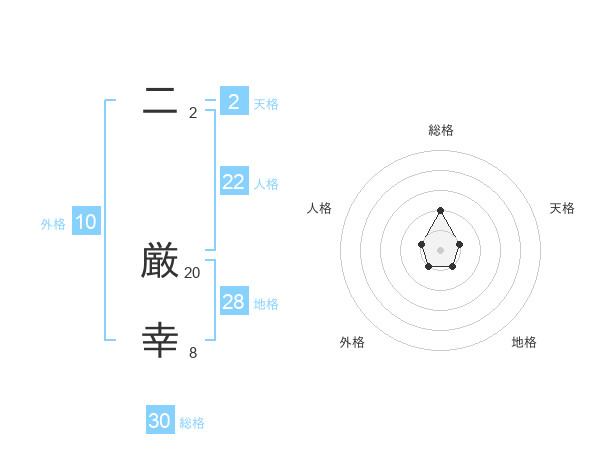 二 厳幸さんの総格は30画の2点!