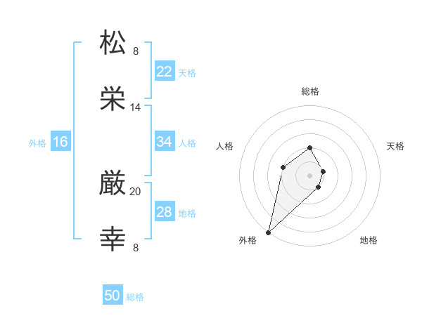 松栄 厳幸さんの総格は50画の2点!