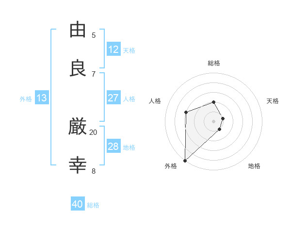 由良 厳幸さんの外格は13画の5点!