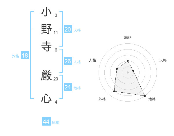 小野寺 厳心さんの総格は44画の2点!