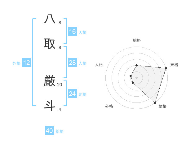 八取 厳斗さんを姓名の画数から五運を鑑定