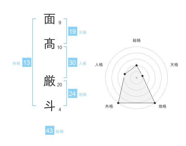 面髙 厳斗さんを姓名の画数から五運を鑑定