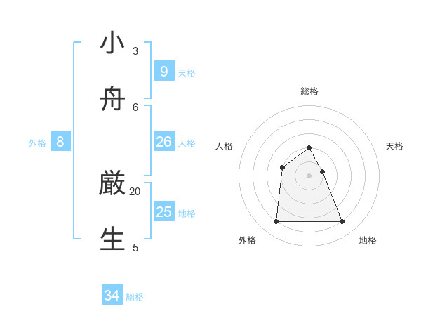 小舟 厳生さんを姓名の画数から五運を鑑定