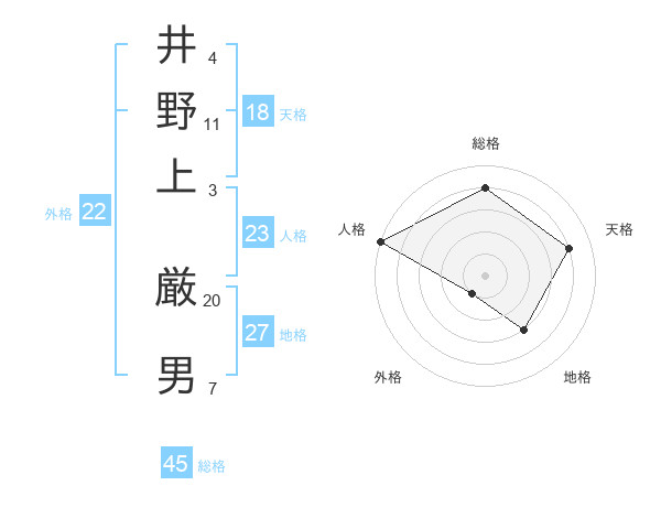 井野上 厳男さんの総格は45画の4点!