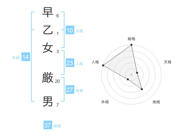 早乙女 厳男さんを姓名の画数から五運を鑑定