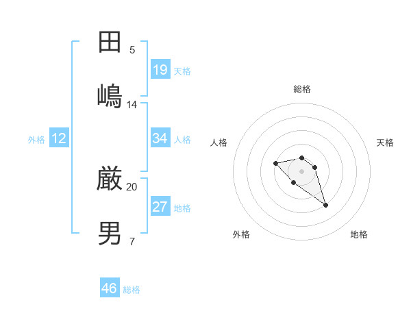 田嶋 厳男さんを姓名の画数から五運を鑑定