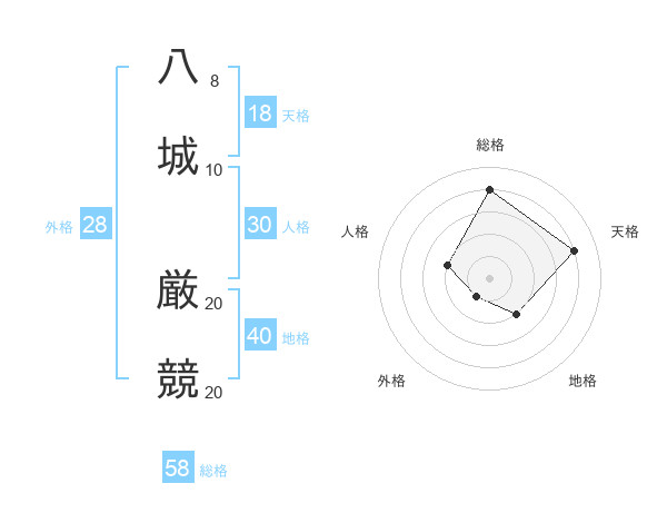 八城 厳競さんの総格は58画の4点!