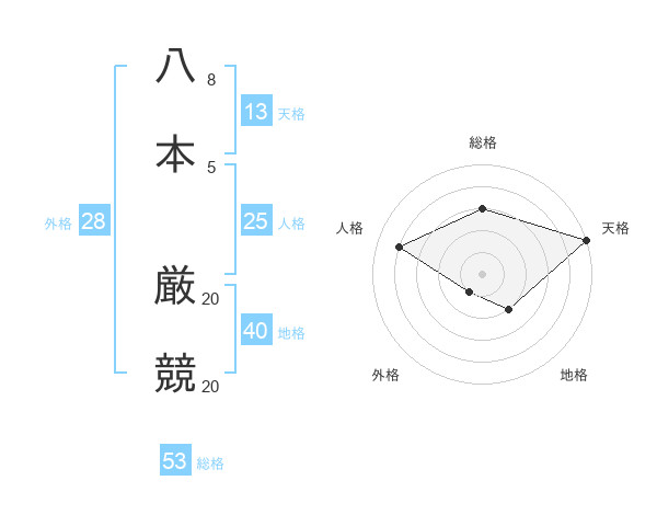 八本 厳競さんの天格は13画の5点!