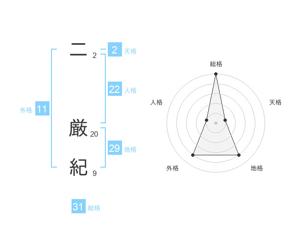 二 厳紀さんの総格は31画の5点!
