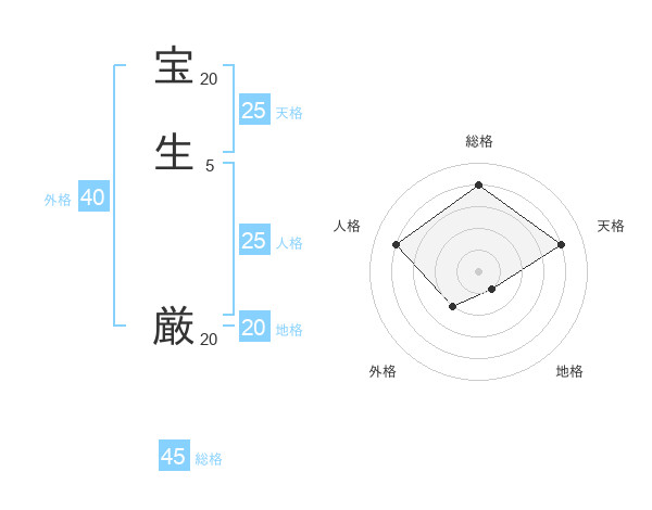 宝生 厳さんの天格は25画の4点!