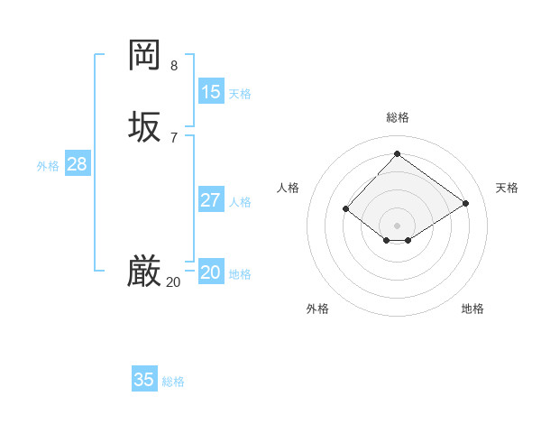 岡坂 厳さんの総格は35画の4点!