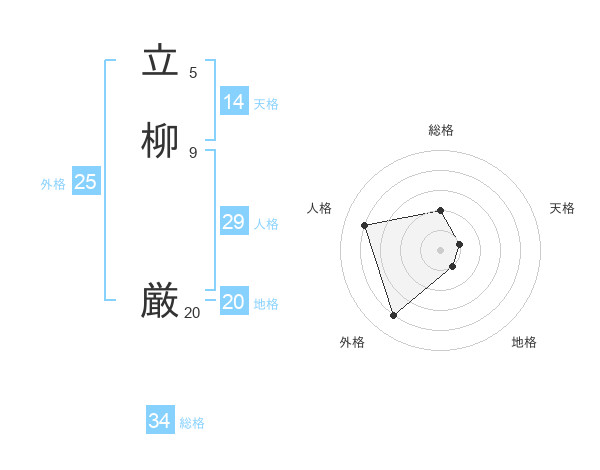 立柳 厳さんの総格は34画の2点!