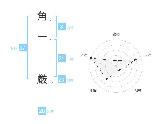 角一 厳さんの総格は28画の1点!