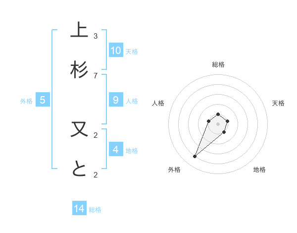上杉 又とさんの総格は14画の1点!