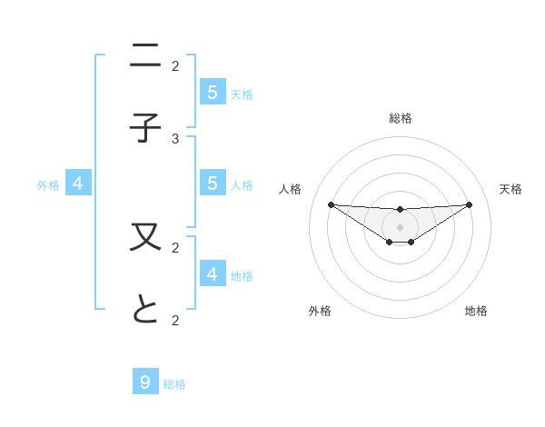 二子 又とさんの天格は5画の4点!