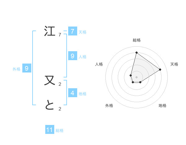 江 又とさんの総格は11画の4点!