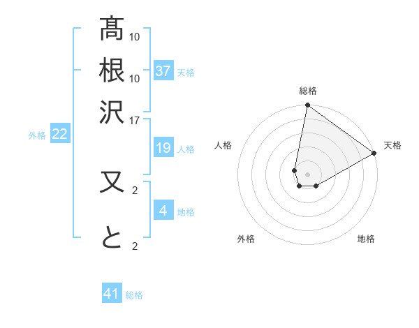 髙根沢 又とさんを姓名の画数から五運を鑑定