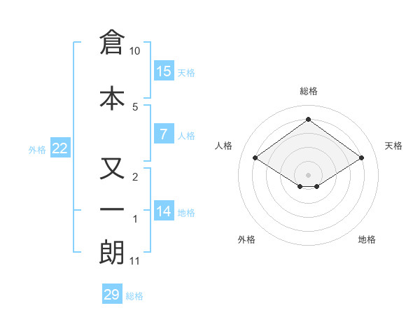 倉本 又一朗さんを姓名の画数から五運を鑑定
