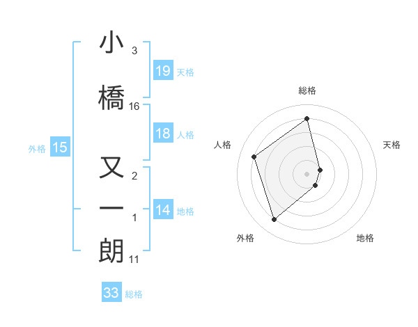 小橋 又一朗さんを姓名の画数から五運を鑑定