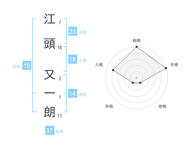 江頭 又一朗さんを姓名の画数から五運を鑑定