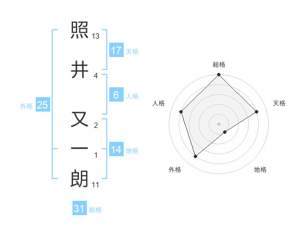照井 又一朗さんを姓名の画数から五運を鑑定