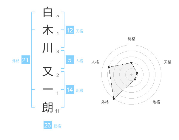 白木川 又一朗さんを姓名の画数から五運を鑑定