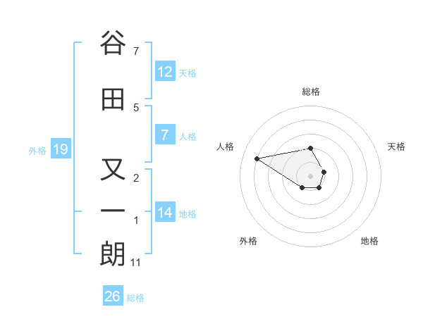 谷田 又一朗さんを姓名の画数から五運を鑑定