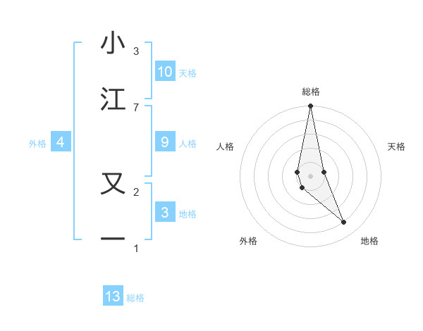 小江 又一さんの総格は13画の5点!