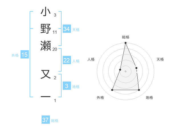 小野瀬 又一さんを姓名の画数から五運を鑑定