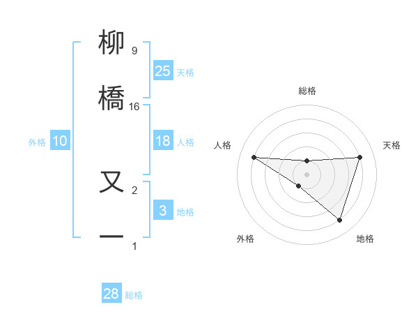 柳橋 又一さんの総格は28画の1点!