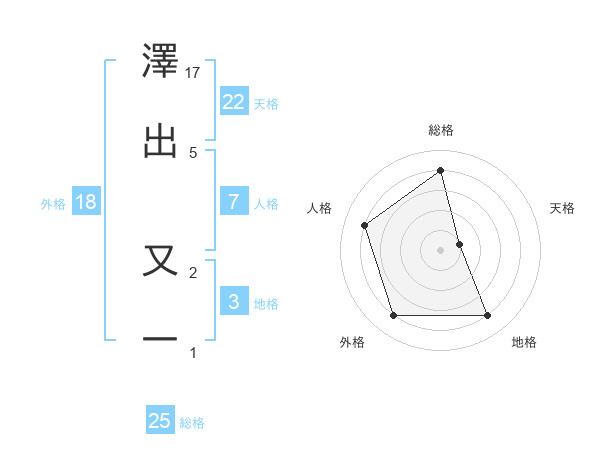 澤出 又一さんの総格は25画の4点!